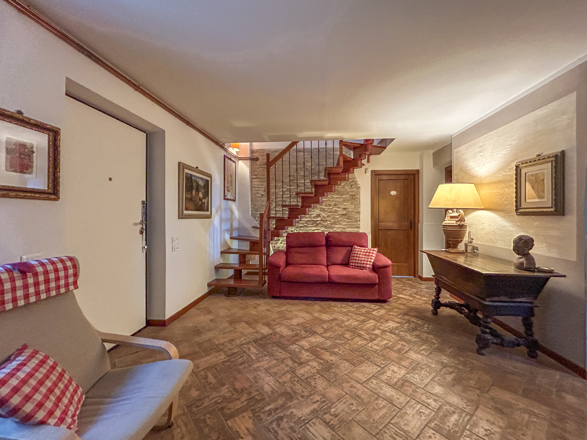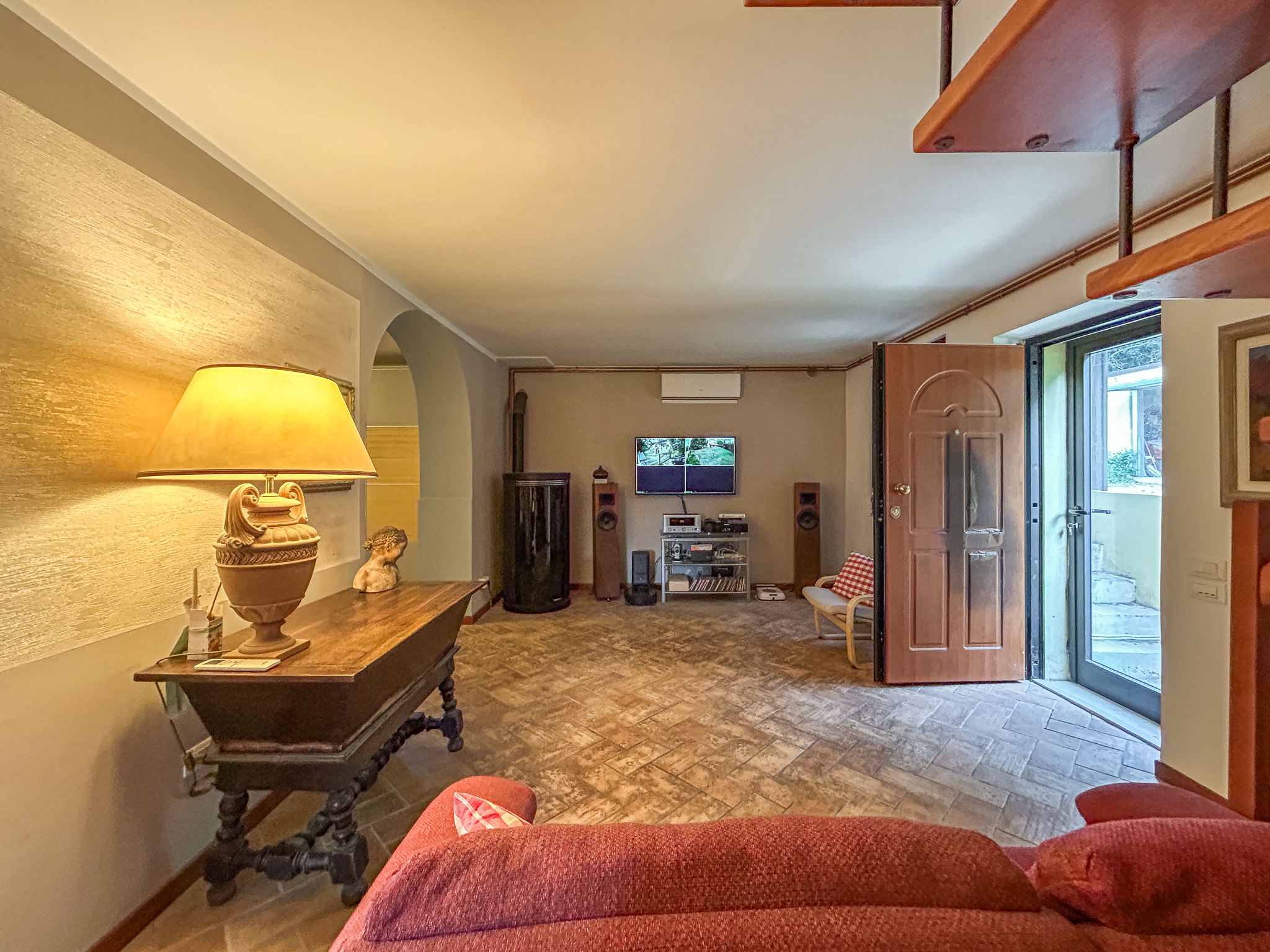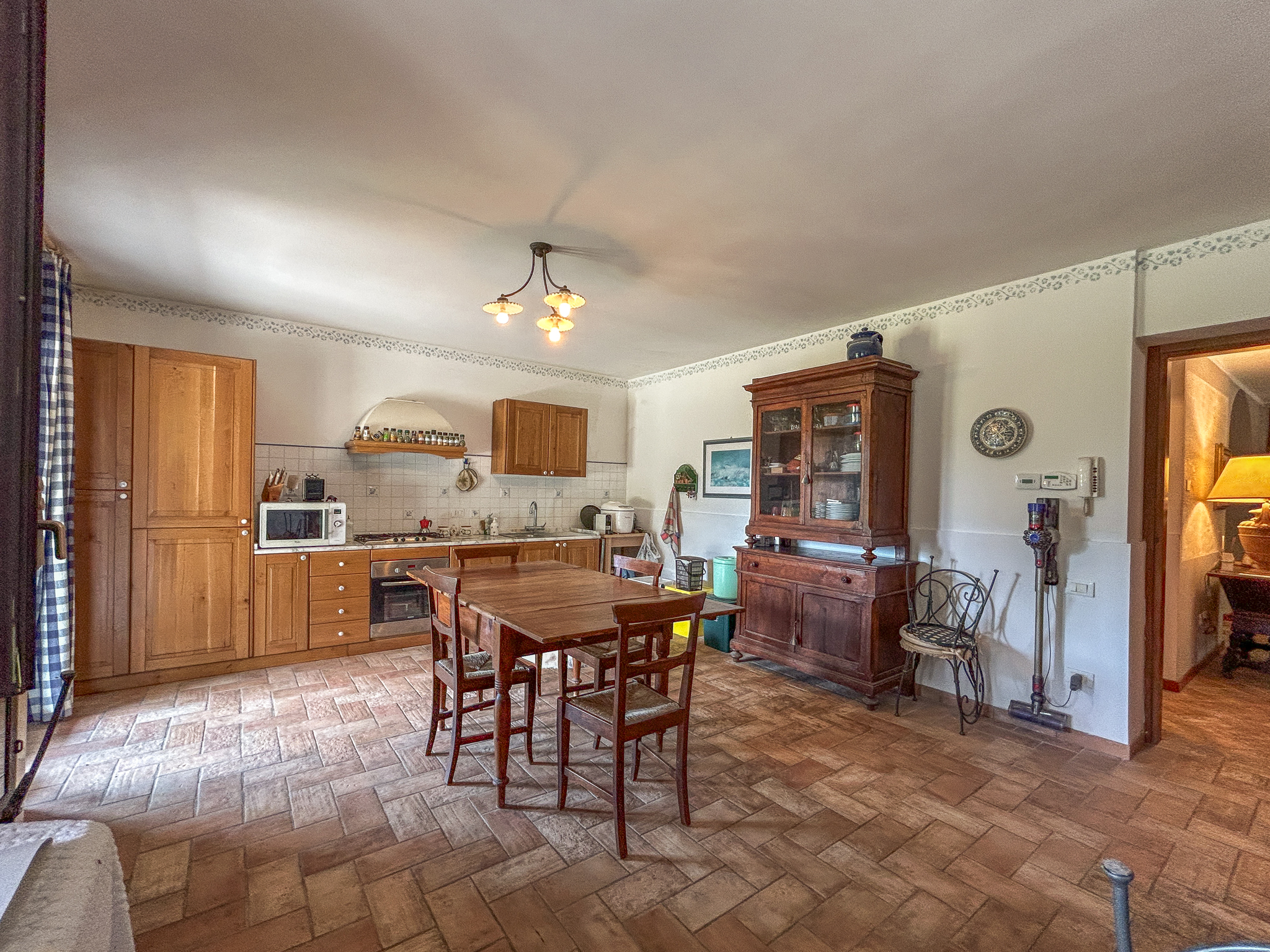 The underfloor heating, powered by a modern 34 kW pellet boiler (installed in 2022), guarantees comfort in every season together with solar thermal for hot water and Daikin hot/cold heat pump air conditioning. All systems – including the automatic gate, outdoor lighting and heating – have been renovated and can also be managed from a smartphone, thanks to home automation.