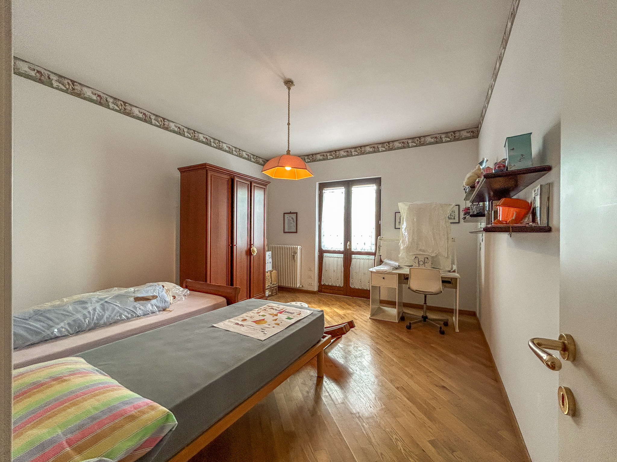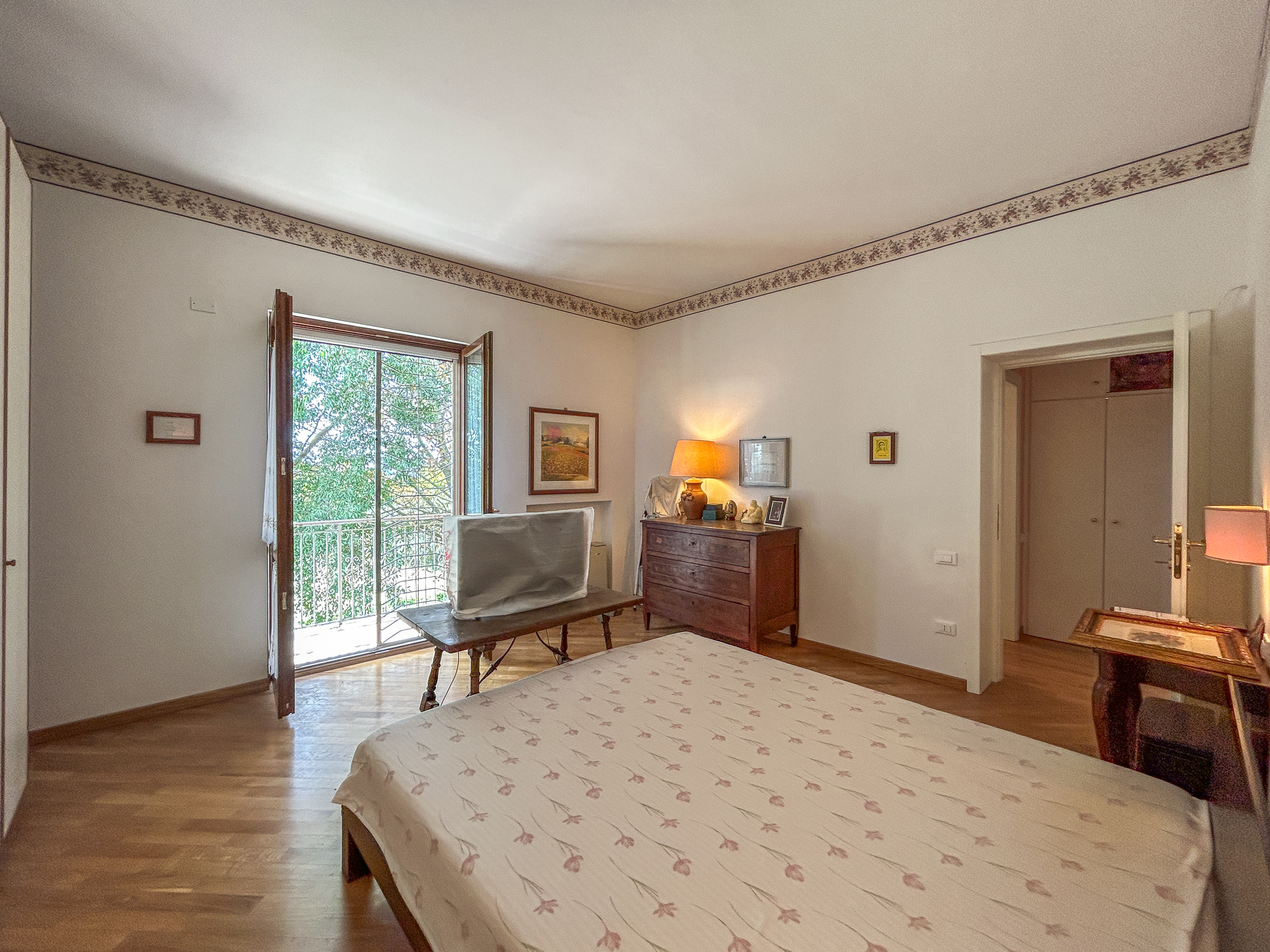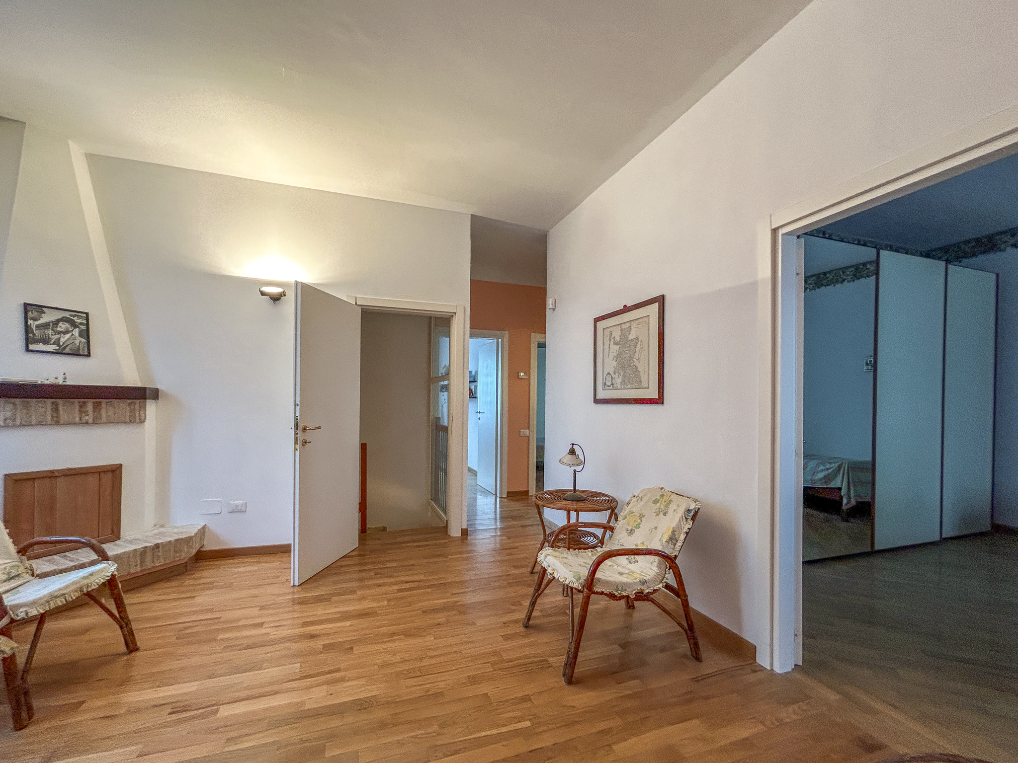 •First floor: wooden floors, a second living room with fireplace, master bedroom with balcony, two other large double bedrooms (one already set up for a kitchen, useful if you want to divide the property into two apartments), bathroom with shower, built-in wardrobe in the hallway.